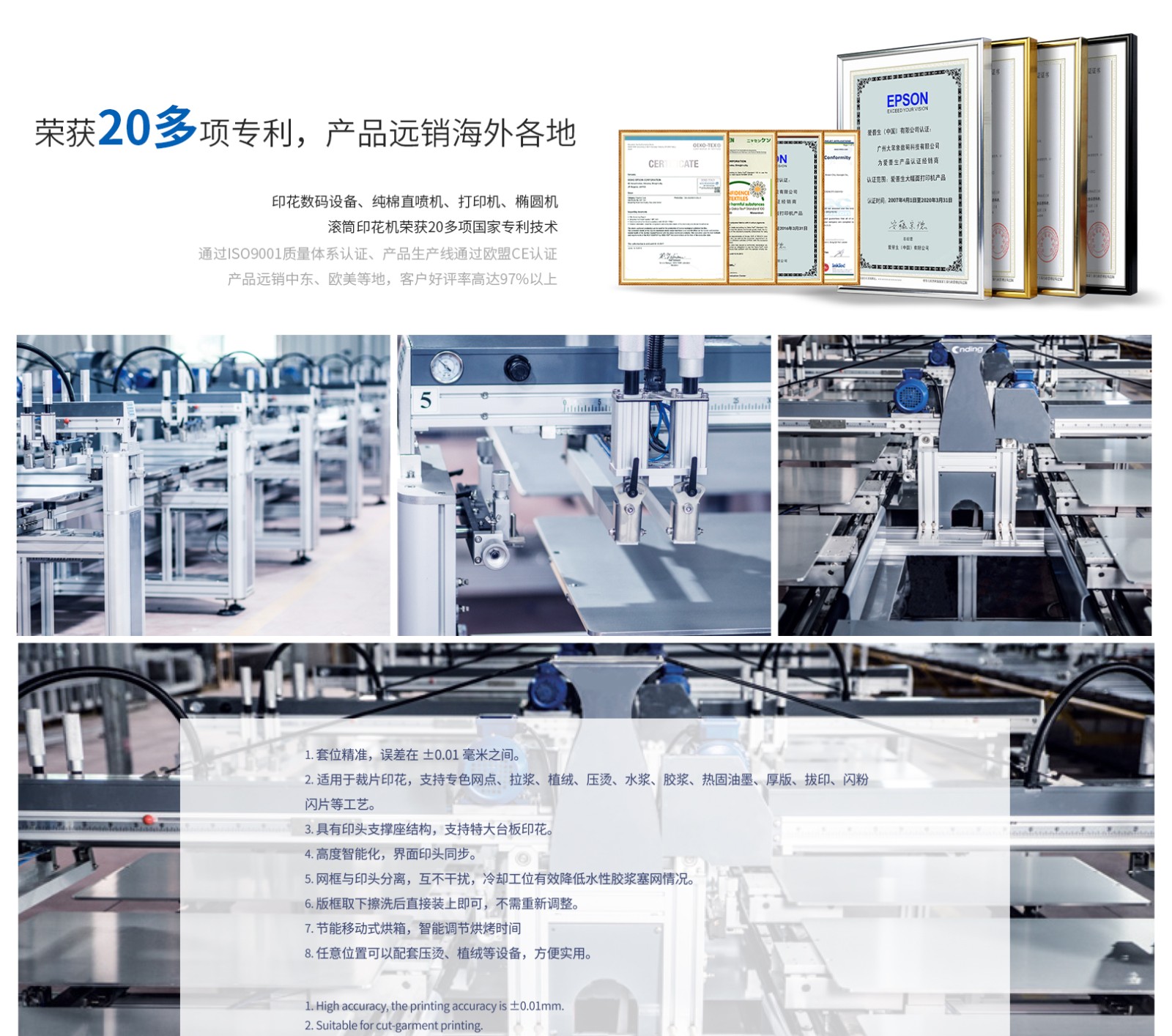 高度智能化,具有印頭支撐座結(jié)構(gòu),支持特大臺板印花