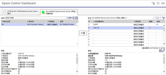 Epson Control Dashboard軟件重磅來襲!可以很好的解決大家的難題。用戶通過Epson Control Dashboard軟件,從服務(wù)器上下載EMX文件,該文件預(yù)置包括ICC曲線、硬件介質(zhì)參數(shù)。預(yù)設(shè)文件的好處就是極大簡化用戶的操作流程。要知道在打印機(jī)硬件操作上,針對不同的介質(zhì),要進(jìn)行多種參數(shù)的優(yōu)化設(shè)置,主要包括打印頭間距、打印前中后三階段的加熱器溫度、介質(zhì)張力、搓紙輪壓力、平臺吸力、后紙糾偏以及定期清洗時(shí)間等,設(shè)置雖然不難,但畢竟需要一點(diǎn)點(diǎn)的時(shí)間和經(jīng)驗(yàn)。而大家用的打印機(jī)型號和介質(zhì)不同,在各種交流平臺上也很難找到匹配的參考數(shù)值,這種感覺就像買了沒料包的泡面一樣不知所措。而現(xiàn)在Epson Control Dashboard軟件的出現(xiàn),用戶可以輕松地針對某一介質(zhì),在軟件上找到專門制定的預(yù)置參數(shù),僅需輕松一點(diǎn),介質(zhì)參數(shù)全部會自動(dòng)導(dǎo)入,高精度與高品質(zhì)打印模式隨心選擇,一個(gè)優(yōu)質(zhì)的打印設(shè)置就這么完成了!